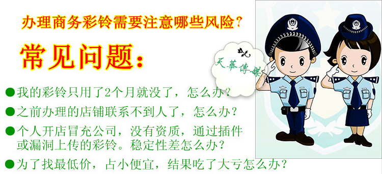 彩鈴內(nèi)容:接通后50秒無人接聽自動掛斷,所以彩鈴非常多只能是50秒,我們建議彩鈴內(nèi)容100字內(nèi),文本時間控制在20-30之間非常佳。因為從聽到響到接聽一般需要20-30秒,撥打您的客戶可以完整的聽一遍內(nèi)容了。彩鈴內(nèi)容體現(xiàn)企業(yè)文化即可,讓撥打您的客戶感覺正規(guī),快速建立信任度,多而雜反而達(dá)不到那個效果!