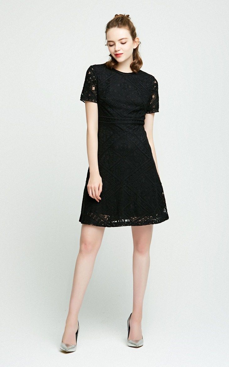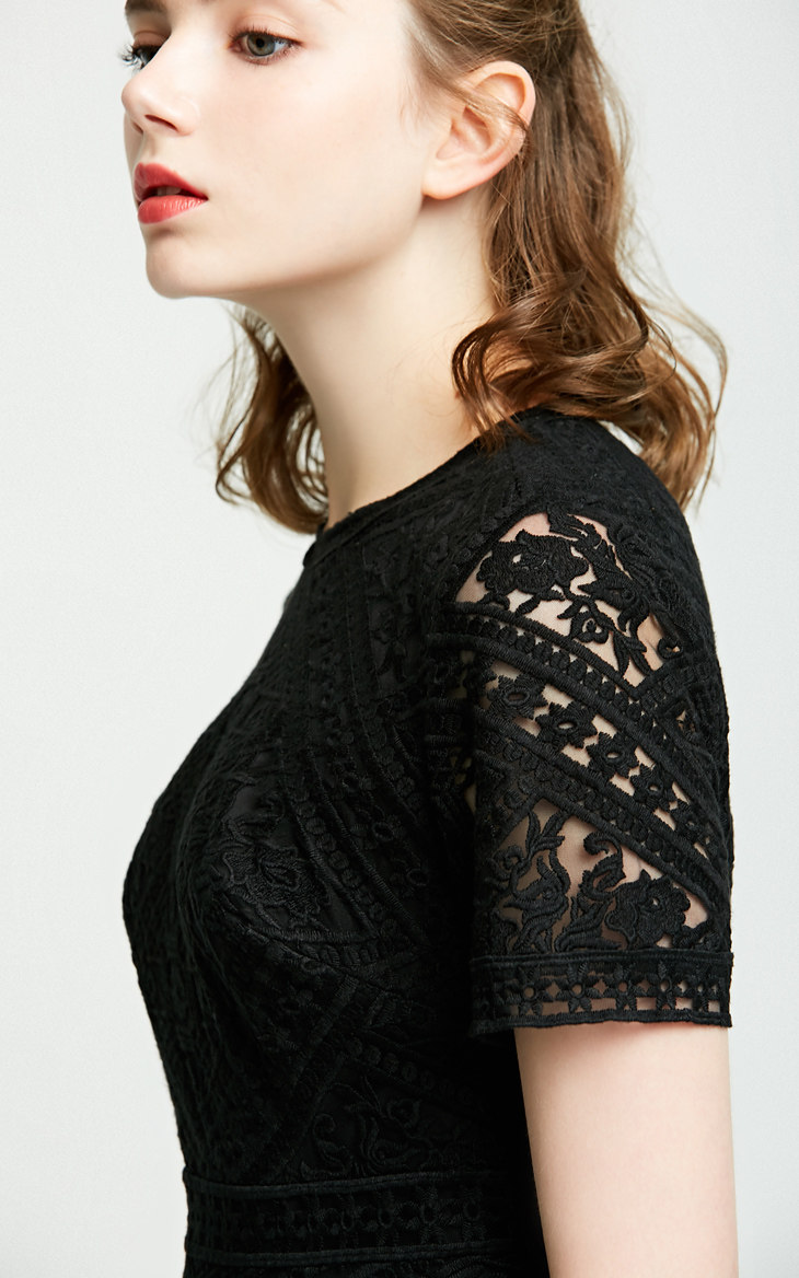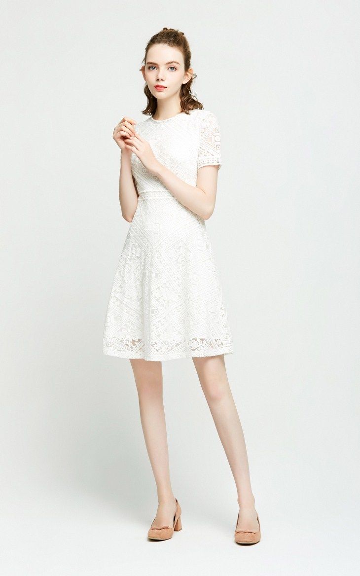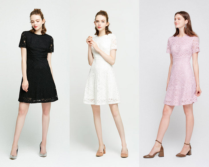 設計賣點 | ●簡約圓領設計 ●后中拉鏈 ●顯瘦A字裙擺 ●蕾絲面料 |