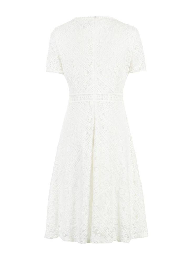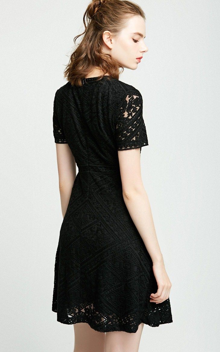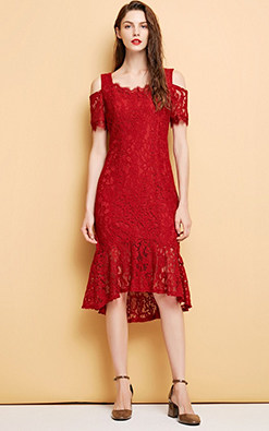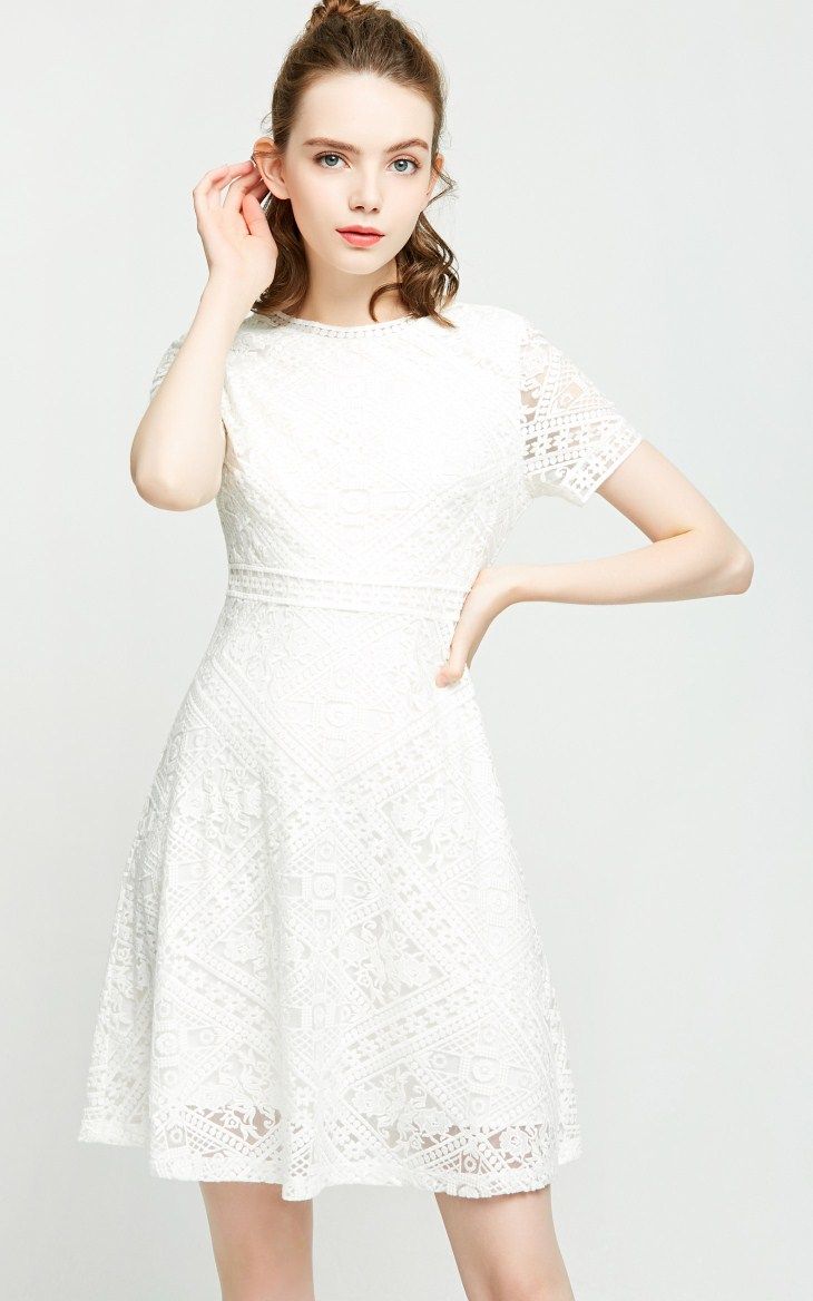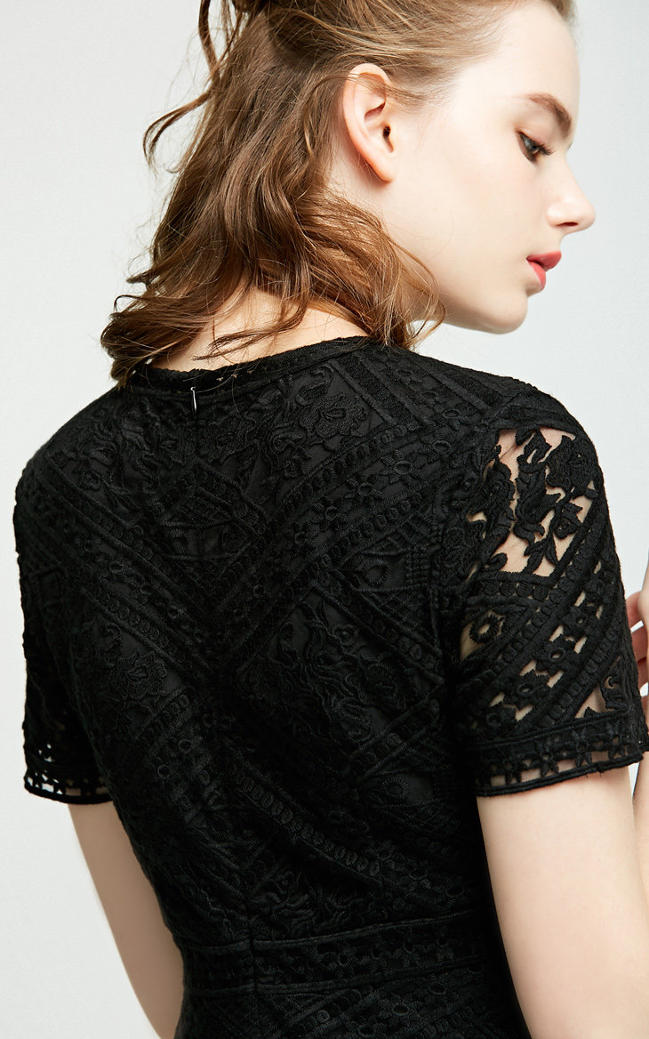 設計賣點 | ●簡約圓領設計 ●后中拉鏈 ●顯瘦A字裙擺 ●蕾絲面料 |
