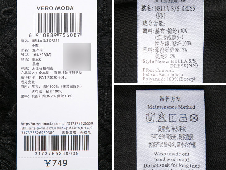 商品信息 | 貨號:31737B526 款名:BELLA S/S DRESS(NN) 吊牌價:¥749 顏色:念香粉色、本白色、黑色 面料:基布:錦綸100%(連接線除外)繡花線:粘纖100% 里料:聚酯纖維96.7% 氨綸3.3% 洗滌建議:反底洗 冷水手洗 不可長時間浸泡 隨洗隨浸 繡花產(chǎn)品易勾絲 請小心護理 |