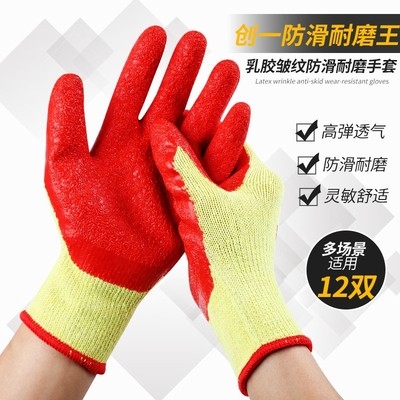 勞動M手套地透氣男工橡膠勞保棉線膠皮耐磨防滑加厚O干活工作帶浸推廣熱賣行情
