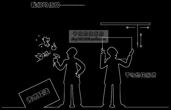 使用方法 (參見(jiàn)視頻演示):與軌道+掛畫(huà)纜繩鉤搭配組合起來(lái)使用。將纜繩嵌入軌道下槽口,穿上纜繩鉤,上下左右調(diào)整好位置,掛上您的藝術(shù)品,就大功告成了!