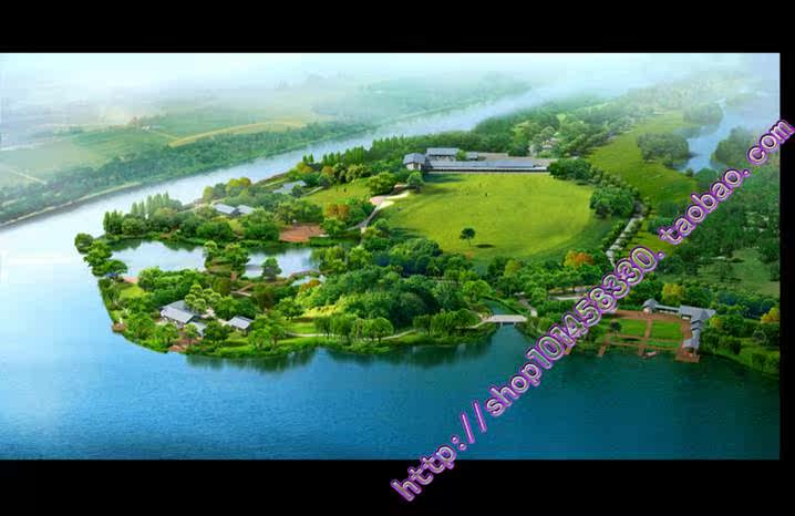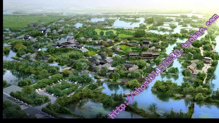 園林景觀設(shè)計(jì)PSD鳥(niǎo)瞰圖PSD分層素材資料效果圖水鄉(xiāng)植物PS后期素材