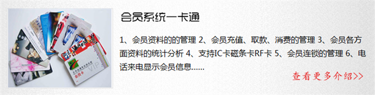 會(huì)員卡:支持IC卡、ID卡、條碼卡、磁卡、以及高大上的“可視卡”。卡類型不同則價(jià)格不同,請(qǐng)咨詢客服。