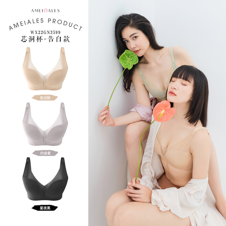 安美拉芯洞杯告白款愛戀款夏季薄款胸罩無鋼圈大胸顯小聚攏文胸價格行情