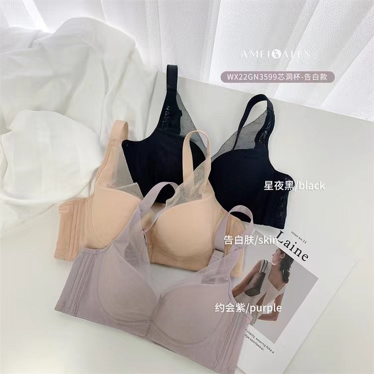 安美拉芯洞杯告白款愛戀款夏季薄款胸罩無鋼圈大胸顯小聚攏文胸推廣熱賣行情