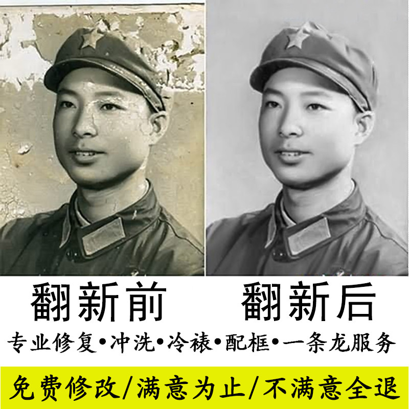 關于試修復,請免開尊口,因為我們的報酬就是修復照片的過程、我們的報酬就是修復照片勞動所創(chuàng)造的價值是由時間決定的,照片翻新很費時間,有樣圖可以看,有很多人支持的名譽,請放心。請買家收到照片后看效果,如有不滿意請直接客服, 免費修改直到滿意為止或退款!