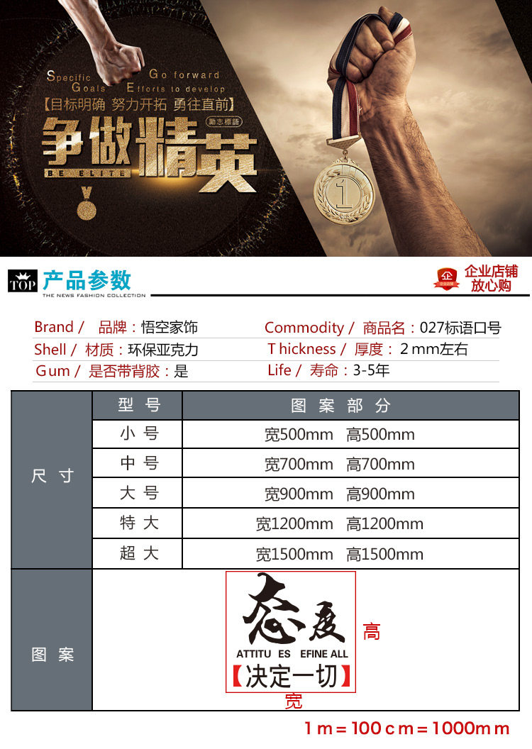 勵(lì)志墻貼墻紙辦公室裝飾公司3d立體亞克力墻貼畫企業(yè)文化墻標(biāo)語推廣熱賣行情