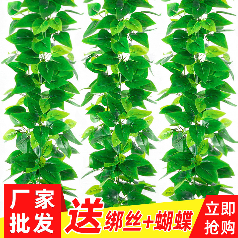 仿真綠葉裝飾藤條假花綠植管道遮擋花藤柱子遮丑藤蔓塑料假樹葉子推廣熱賣行情