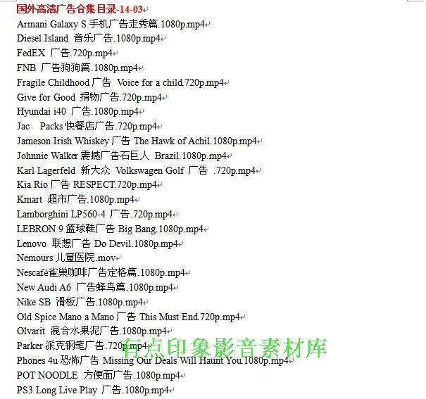外國(guó)高清電視廣告合集目錄-10