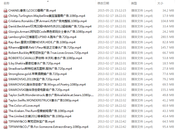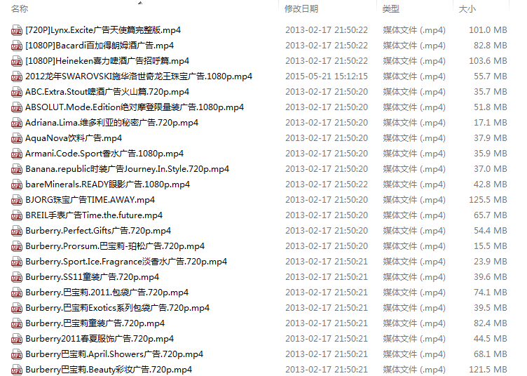 外國(guó)高清電視廣告合集-22_更新6 歐美時(shí)尚廣告2 目錄: