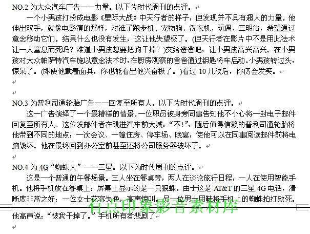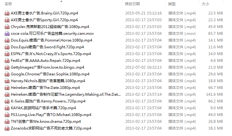 內(nèi)容包括:國(guó)外獲獎(jiǎng)電視廣告作品、世界經(jīng)典廣告、超級(jí)碗廣告作品、嘎納獲獎(jiǎng)廣告作品、歐美時(shí)尚廣告、美國(guó)電視臺(tái)廣告等海量作品集