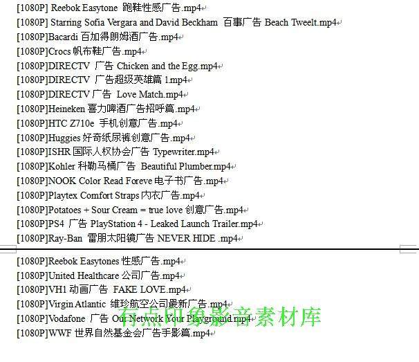 外國(guó)高清電視廣告合集目錄-01