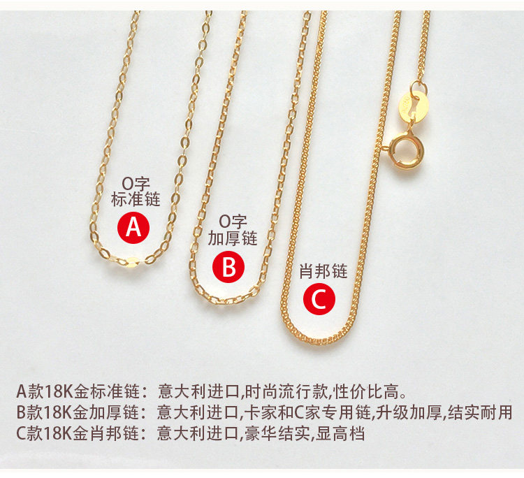 本款單吊墜不含鏈,需要18K金鏈的親們請點(diǎn)擊以下鏈接:http://m.zxsjkj.com/shop/c55/t565a81be9cce.html