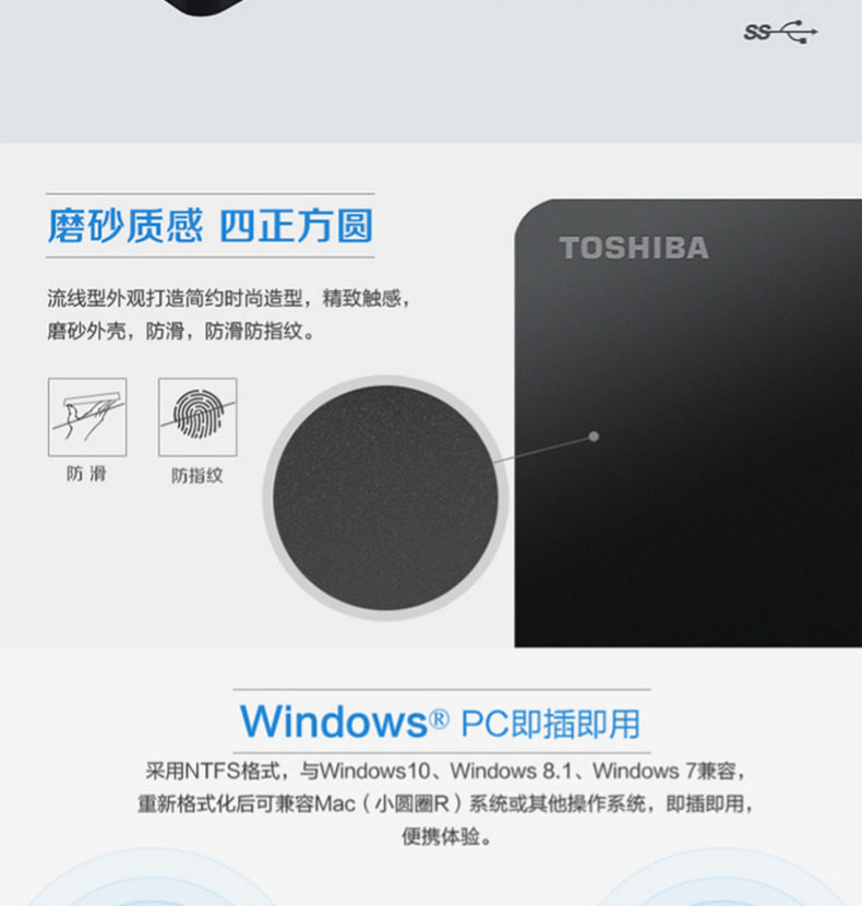 [順豐包郵]東芝移動硬盤1t USB3.0高速 兼容mac 新小黑A3新款價格行情