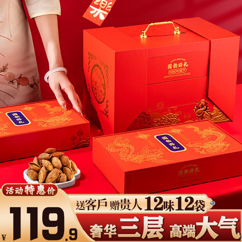 堅(jiān)果大禮包團(tuán)購(gòu)高檔春節(jié)過(guò)年送禮長(zhǎng)輩定制年貨干果零食混合禮盒裝推廣熱賣行情