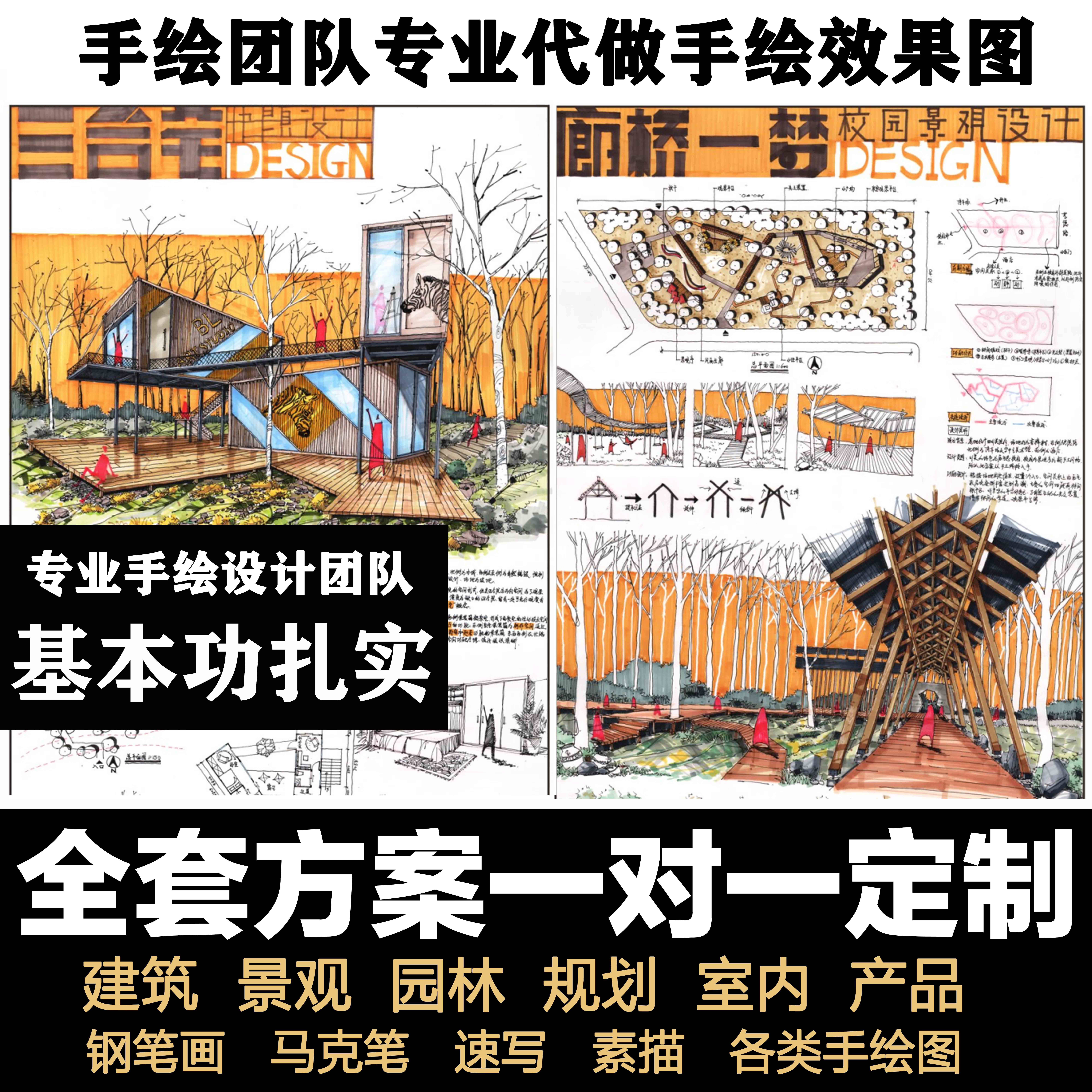 环艺建筑景观园林规划室内外产品效果图设计手绘马克笔代画代做推广热卖行情