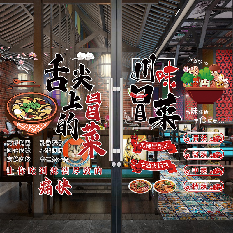 麻辣拌麻辣燙冒菜小吃店鋪玻璃門貼紙海報(bào)裝飾櫥窗廣告宣傳墻貼畫推廣熱賣行情