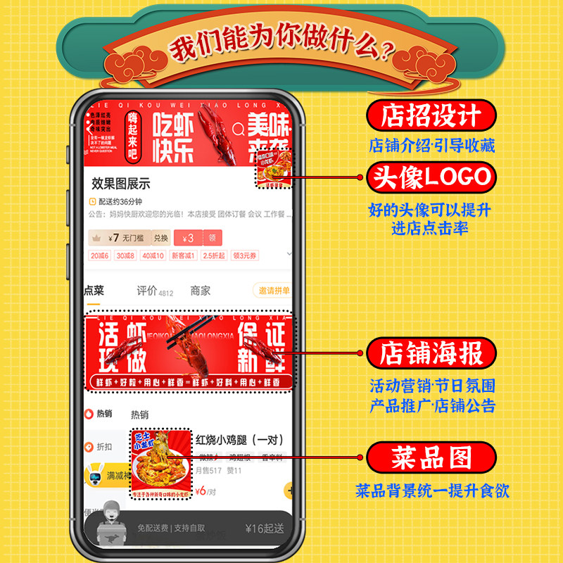 美團(tuán)外賣店鋪裝修logo設(shè)計(jì)店招海報(bào)設(shè)計(jì)菜品圖片優(yōu)化ps菜品換背景推廣熱賣行情